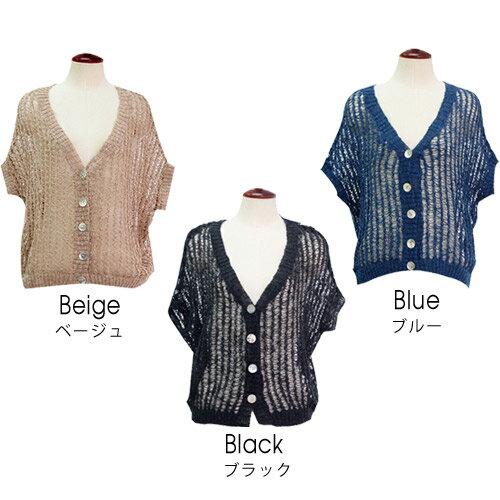 かぎ編み透かしニットカーディガンSee-through Knit Cardiganゆるいかぎ編みからのぞく素肌がキュートサマームード全開の薄手カーディガンです。
