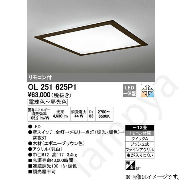 LEDシーリングライト OL251625P1(OL 251 625P1) 12畳用 リモコン付 オーデリック